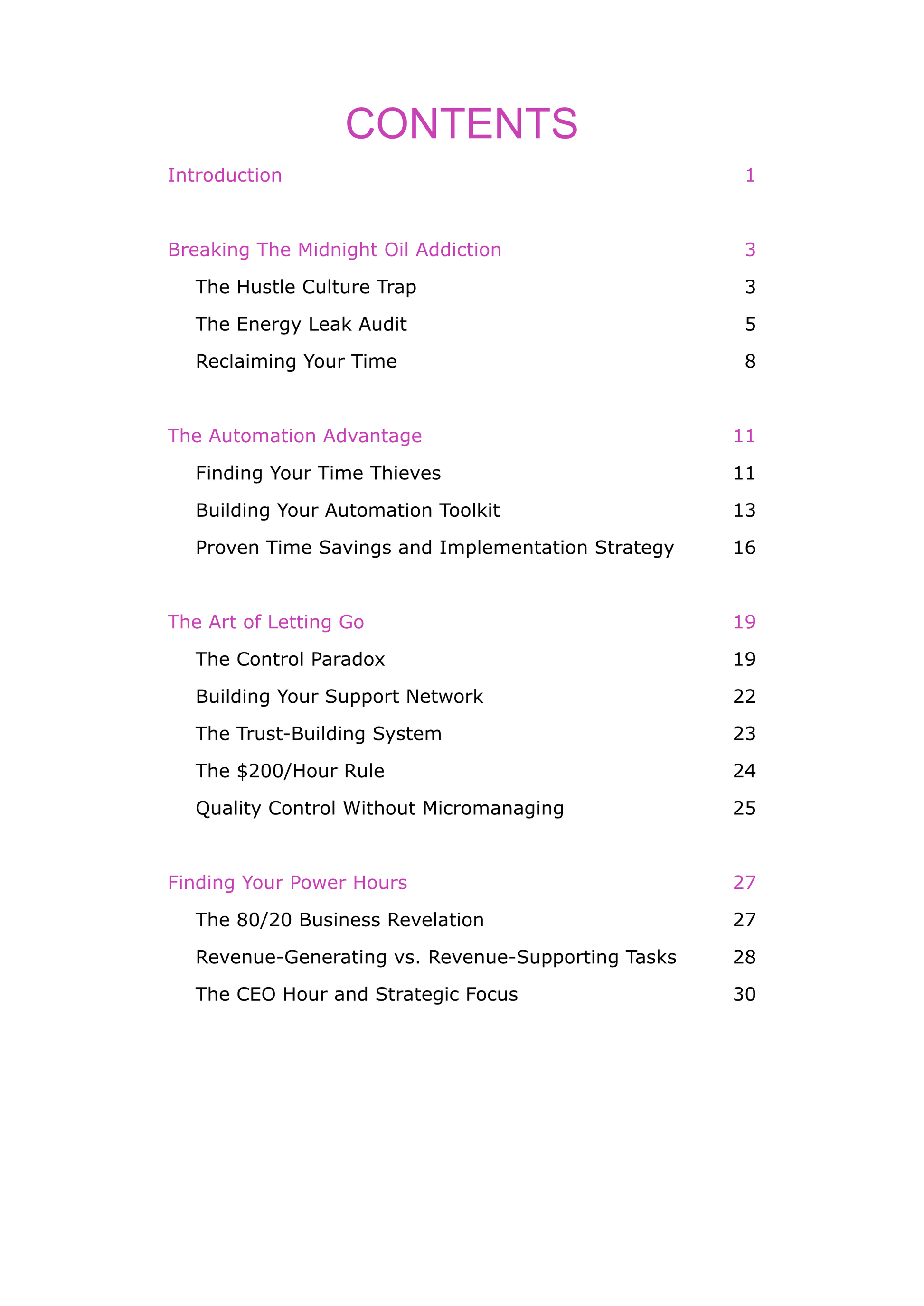 Inside this ebook, you'll discover how to audit your time and cut out the tasks that don't move the needle. You'll receive clear delegation frameworks that enable you to hand off work with confidence. You'll learn to build repeatable systems that free you from constant firefighting. And you'll see real examples from entrepreneurs who've used these exact strategies to reclaim their time and double their growth.